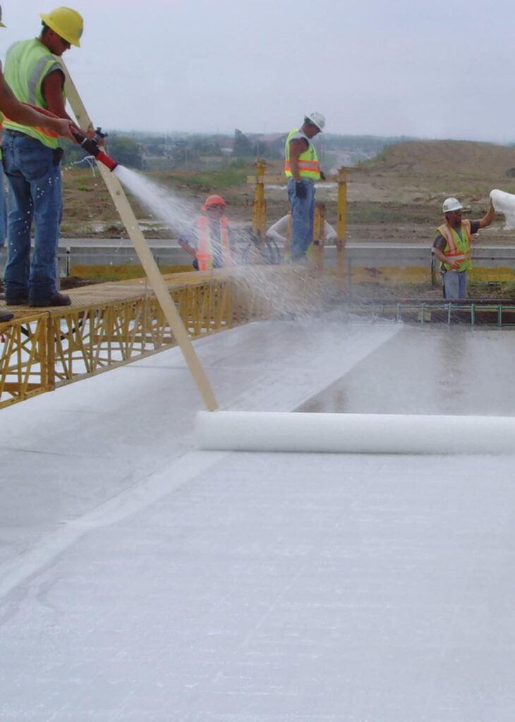 A chemical substance is applied to the surface of the concrete to protect against water loss.